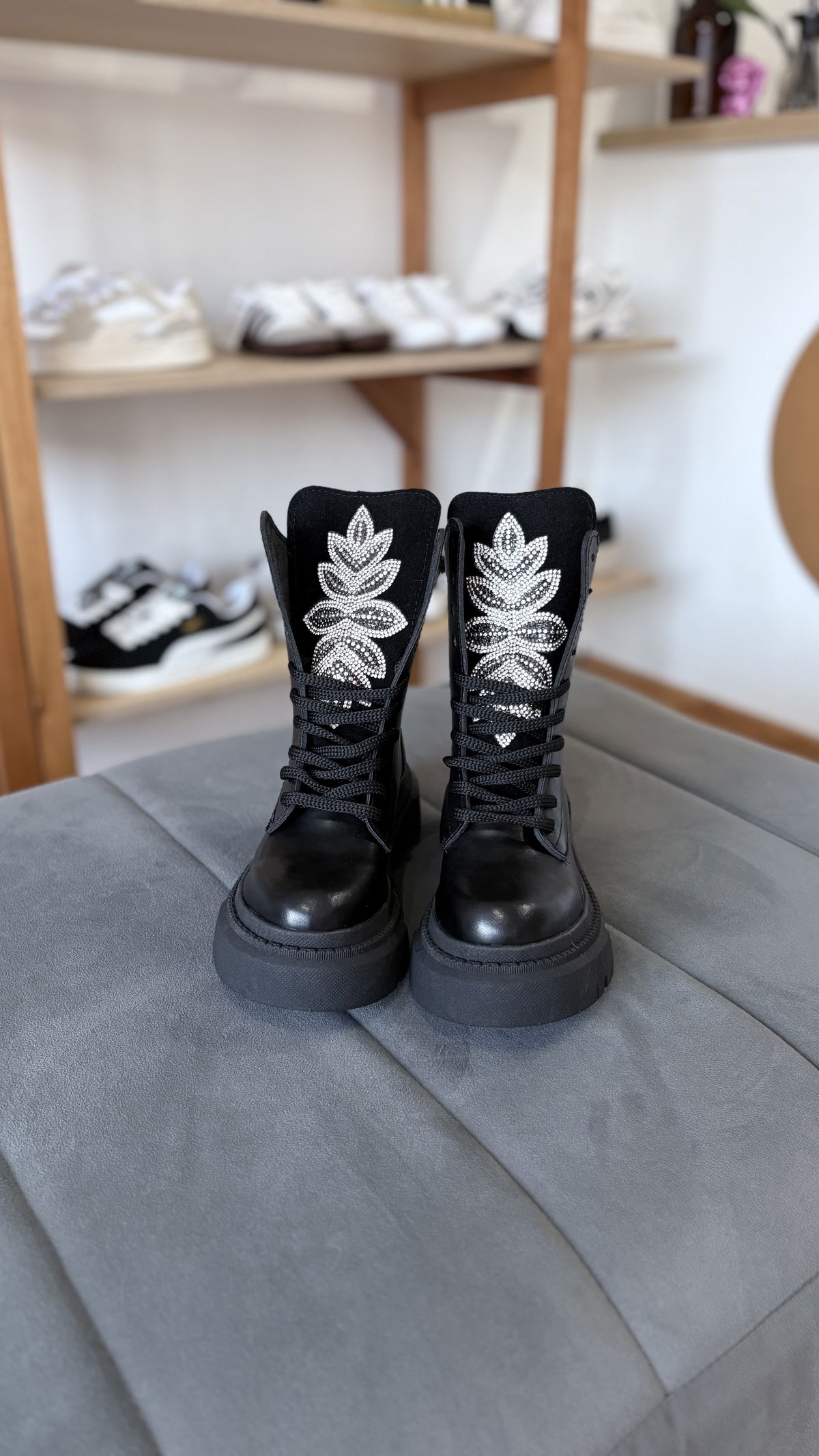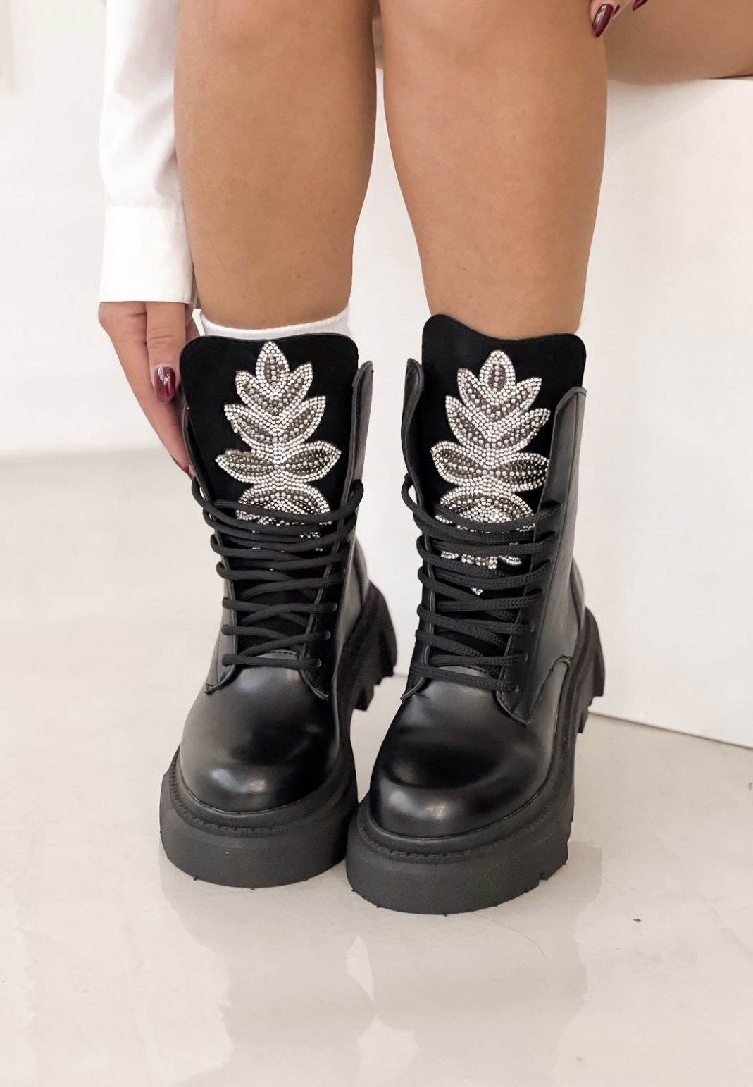 Descubrí los Borcegos BETTY, el calzado clásico que transforma tu estilo con un toque de brillo. Confeccionados en eco cuero de alta calidad, ofrecen durabilidad y elegancia en cada paso. Su base de 4 cm brinda comodidad y altura justa para destacar sin esfuerzo. Los detalles de strass aportan un destello sofisticado, ideal para quienes buscan combinar tradición y modernidad.