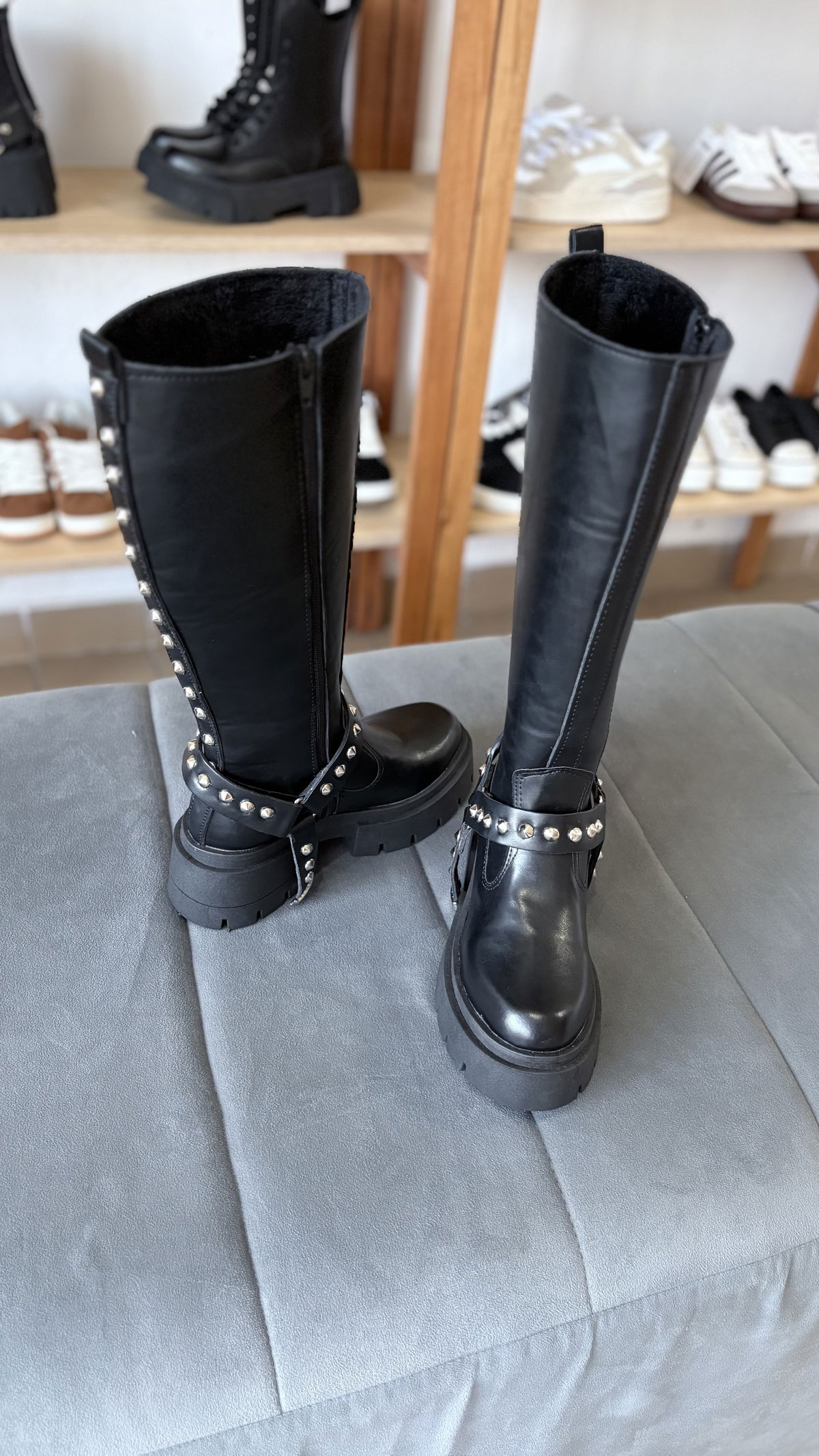 Descubrí las Botas GUADA, el calzado que combina estilo y funcionalidad en cada paso. Confeccionadas en eco cuero de alta calidad, presentan detalles en tachas que aportan un toque audaz y moderno. Su base de 6 cm y su caña de 35 cm aproximadamente, brindan la altura justa para destacar sin perder comodidad. Además, cuentan con un estribo desmontable y cierre interno para un calce seguro y fácil. ¡Elegí GUADA y marcá tendencia con cada pisada!