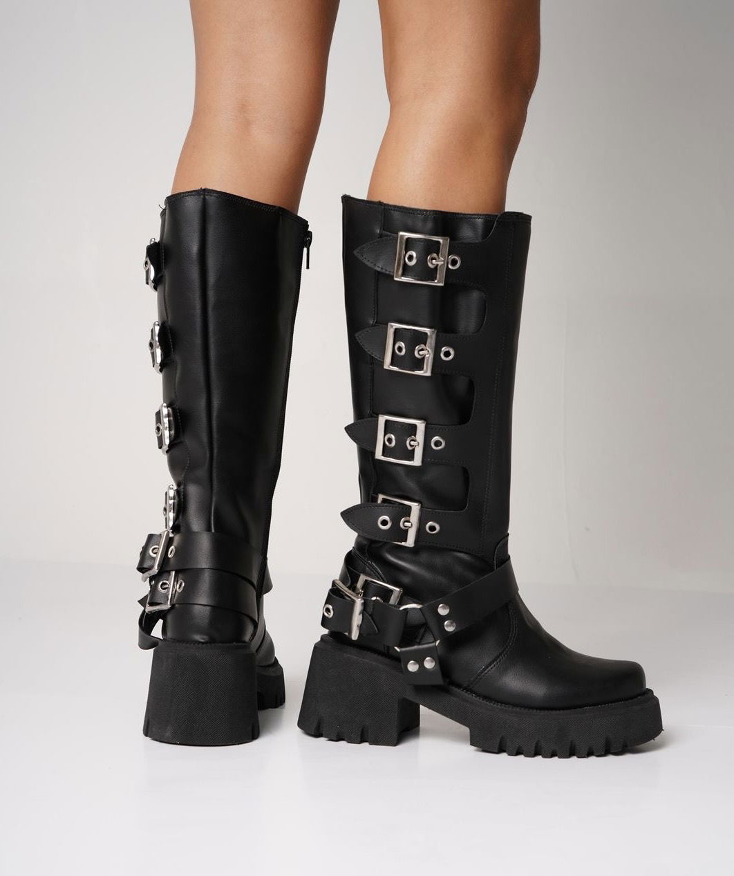 Confeccionadas en eco cuero, presentan una caña de 34 cm, perfecta para un look sofisticado y moderno. Los detalles de hebillas aportan un toque distintivo y personal, mientras que el cierre facilita el calce, haciendo que ponértelas sea simple y rápido.
