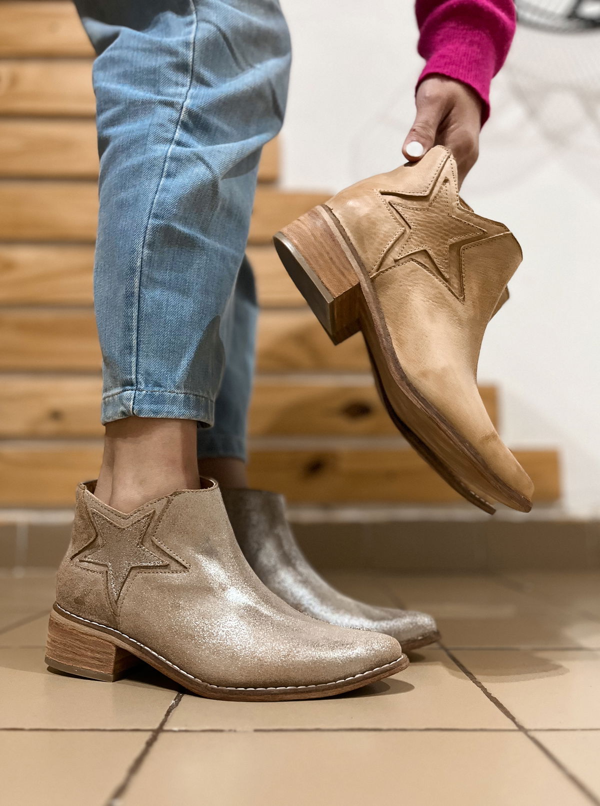 Contienen cierre interno y detalle de estrellas.Su taco mide 4 cm y la caña completa 10,5 cm.