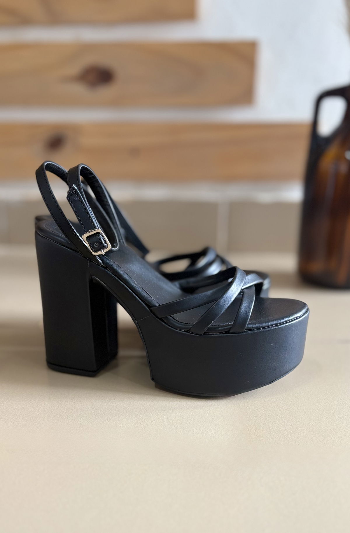 Con un taco de 12 cm. y una plataforma de 5,5 cm, este modelo estilizan tu figura! Sus detalles de tiras finas realzan el pie, y su pulsera regulable te asegura un ajuste perfecto.